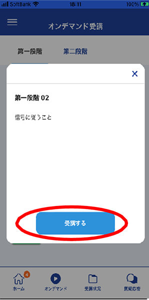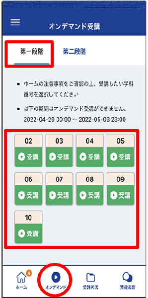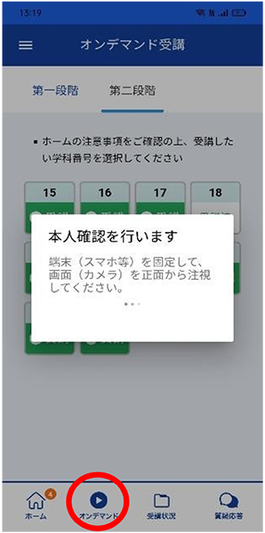 5. 各時限50分間、継続して視聴することで受講済となります。受講中に通話やメッセージ確認などの操作をした場合はNG判定となります。