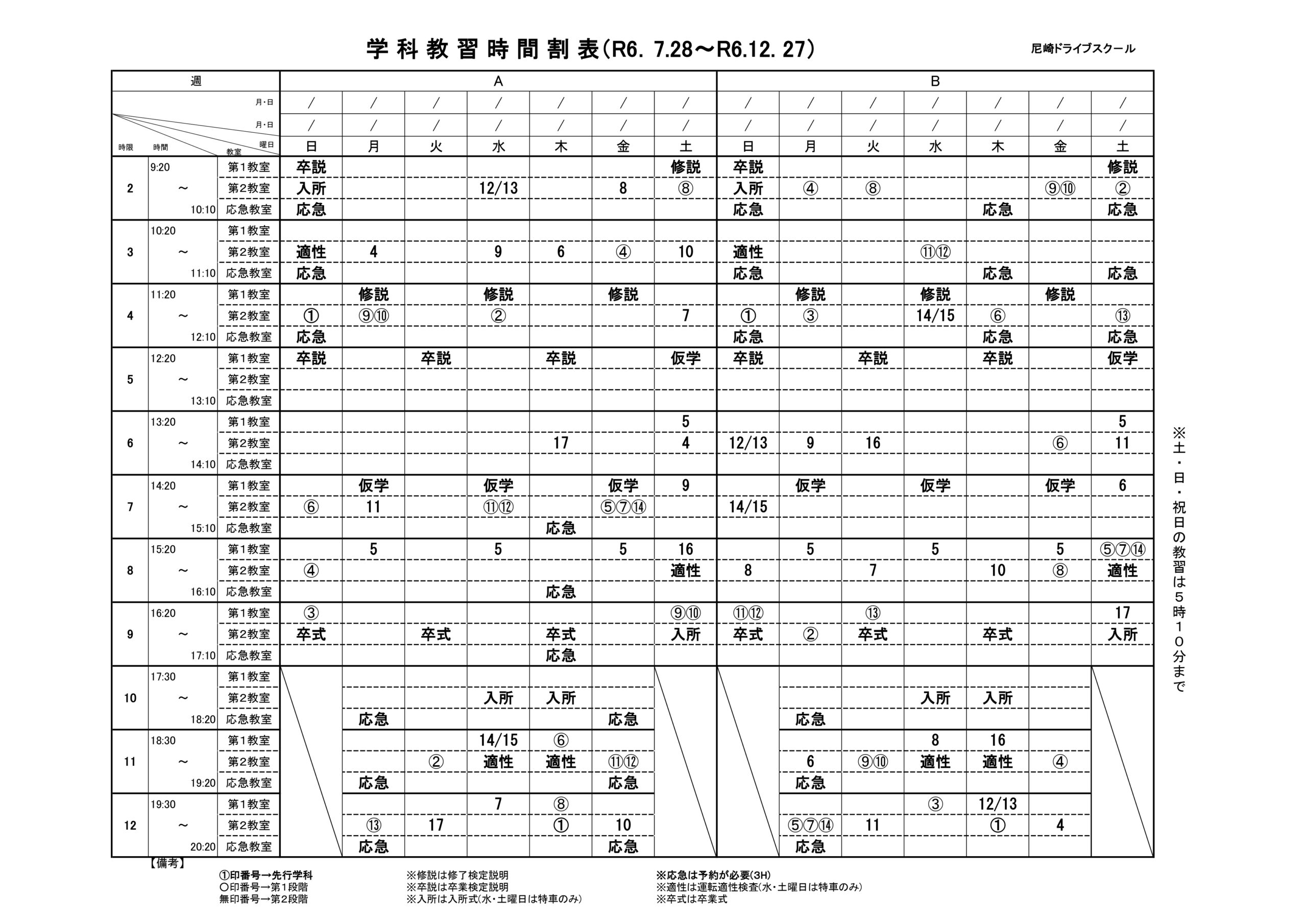 ▼令和6年4月14日~令和6年7月27日までの学科日程表はこちら