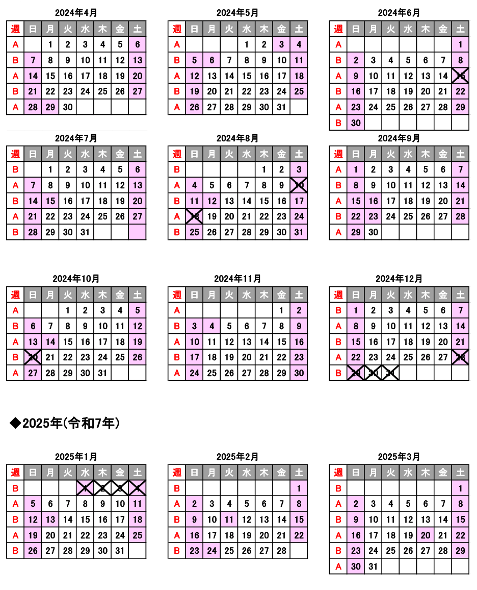 - 学科日程表・AB週の確認はこちらをご覧ください